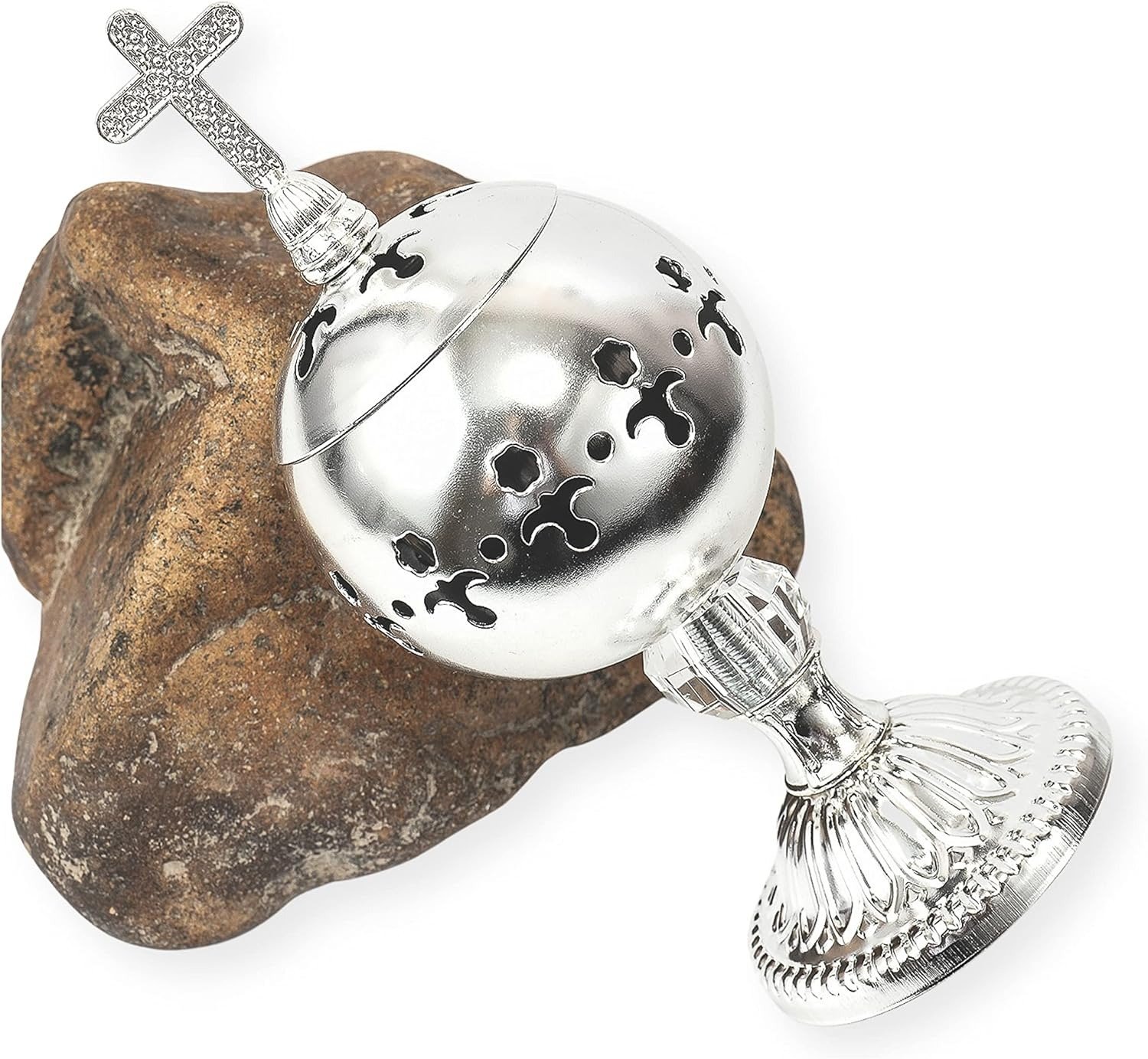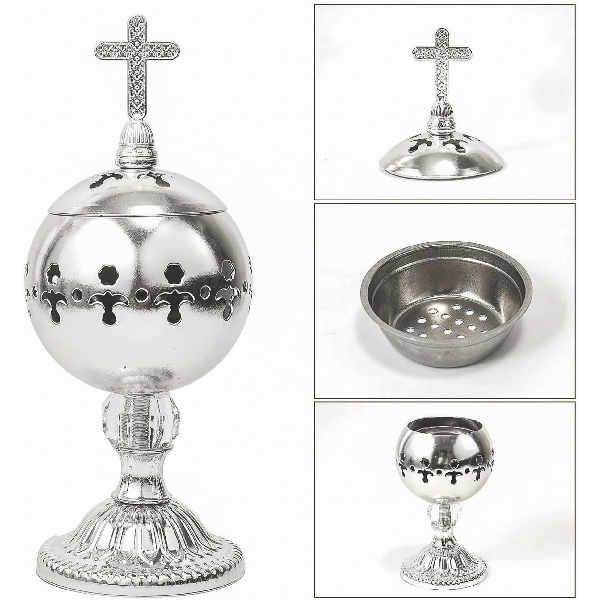 ✝️Jesus bless you✝️🌟 Silver Charcoal Incense Burner Catholic Cross Censer – Brass Plated Distiller for Church & Home 🌟